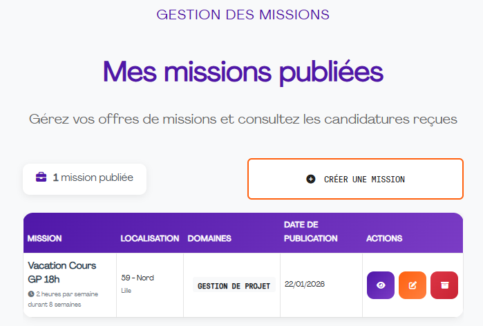 NB : Merci de votre patience pour permettre aux entreprises et écoles de créer les premières missions.