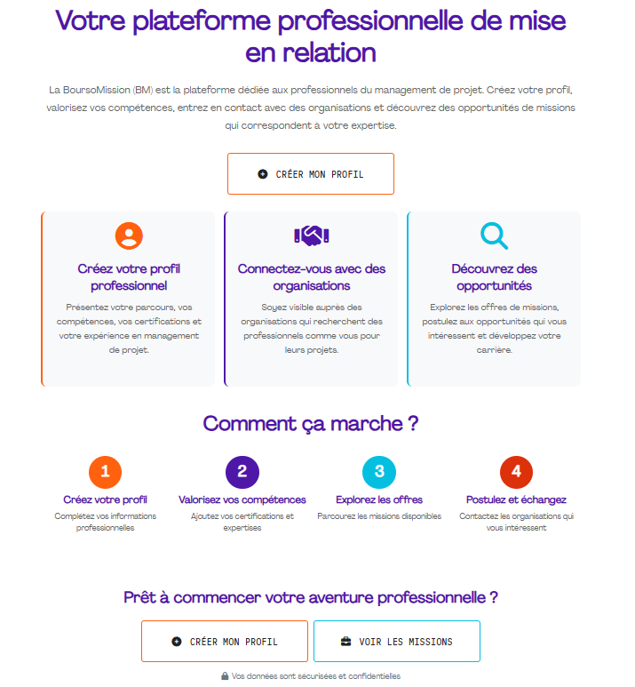 La Bourse des Missions n’est pas une plateforme de plus. C’est la bonne plateforme où votre appartenance au PMI France est le fondement même.